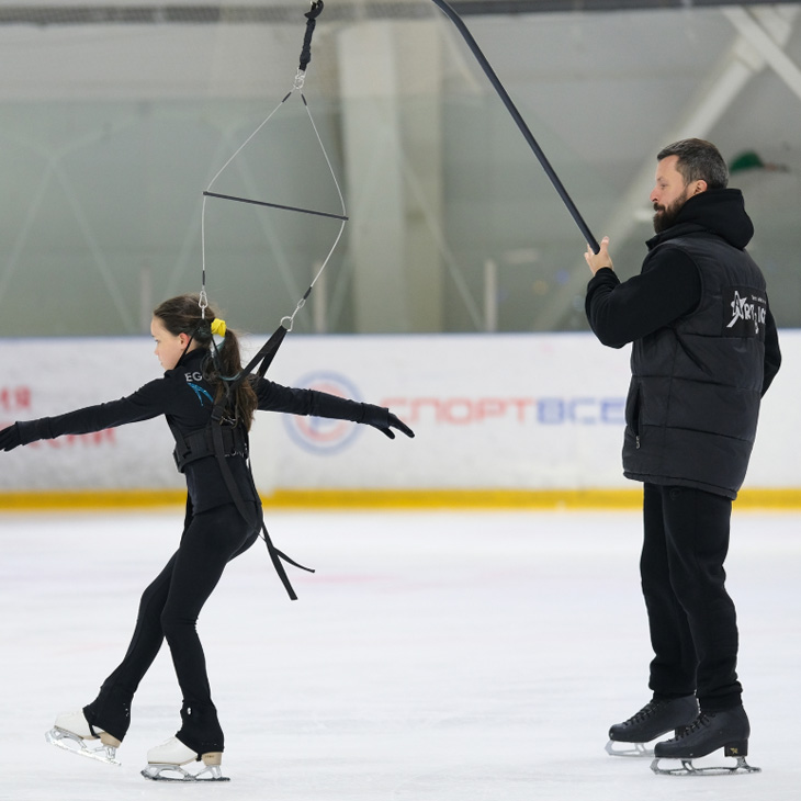 Именно поэтому по каждой дисциплине (прыжки, скольжение, вращения) наша команда проводит спец. занятия в зале. Все эти подготовительные и подводные упражнения, дают максимальную эффективность при разучивании и корректировке упражнений на льду.